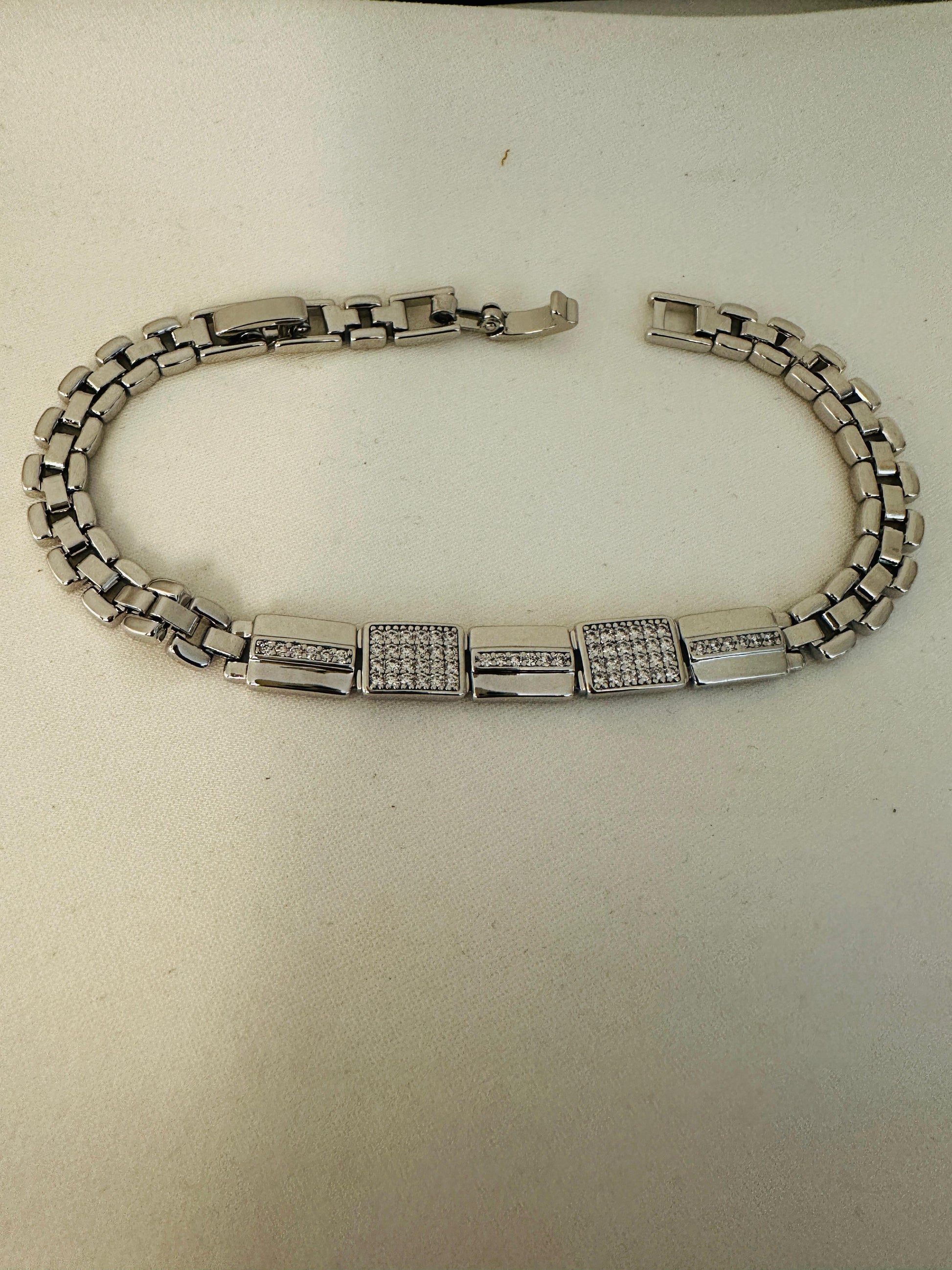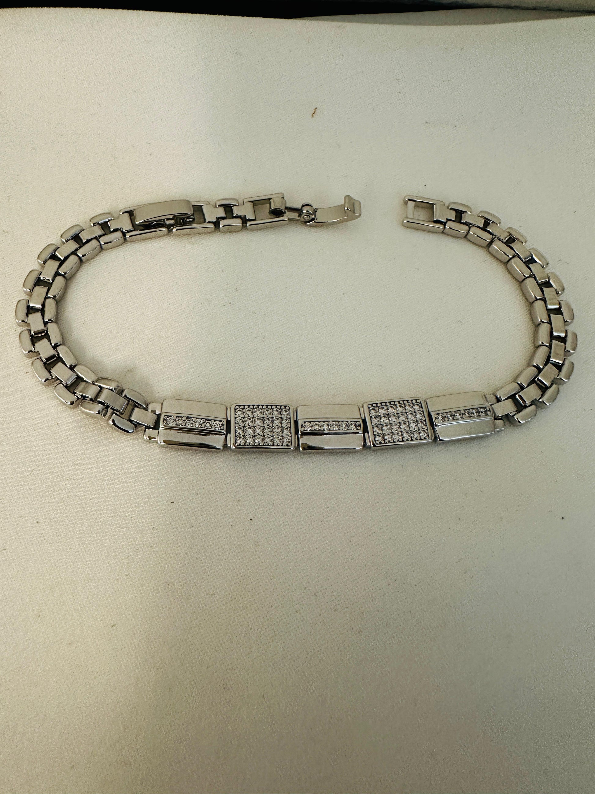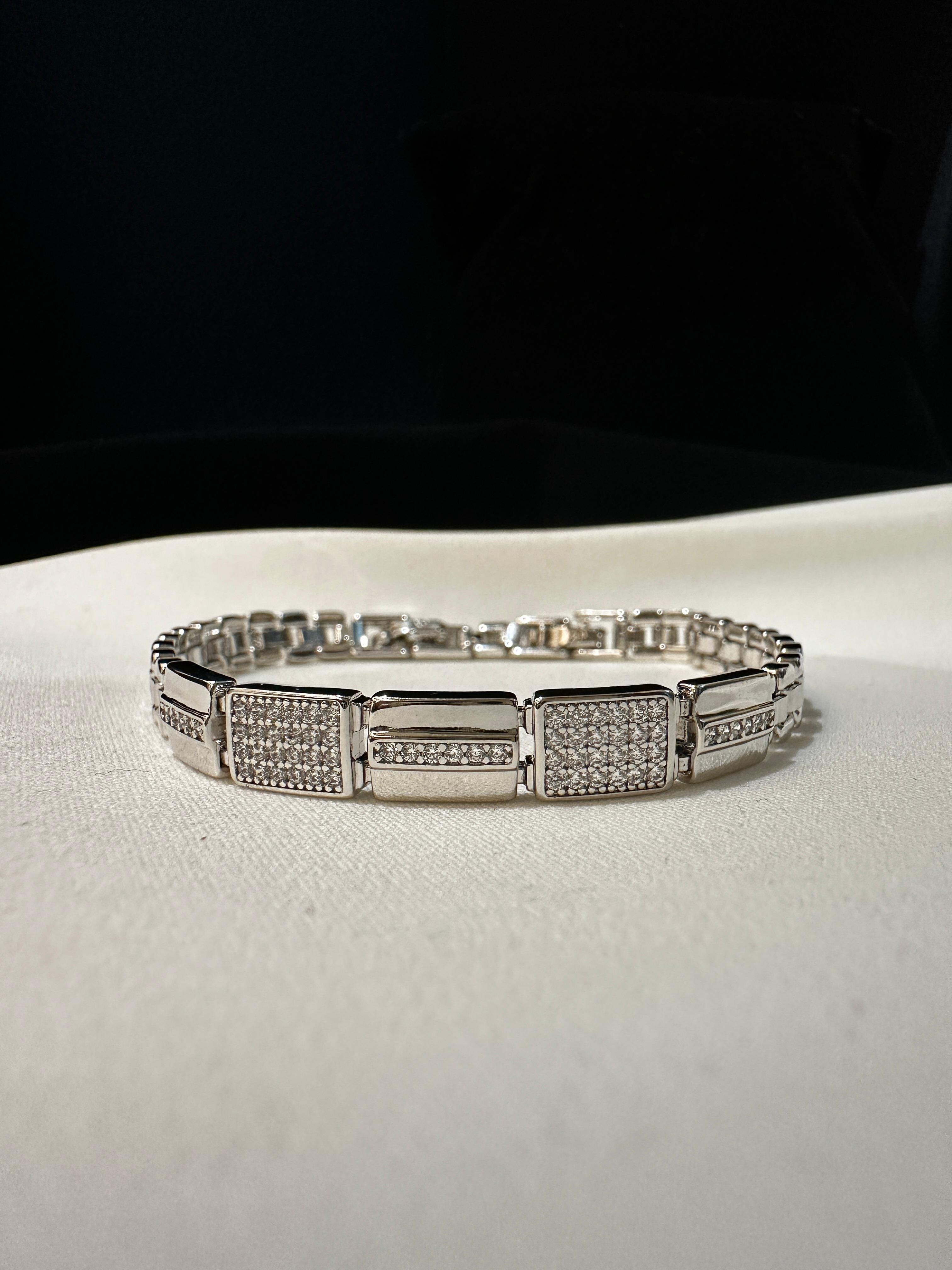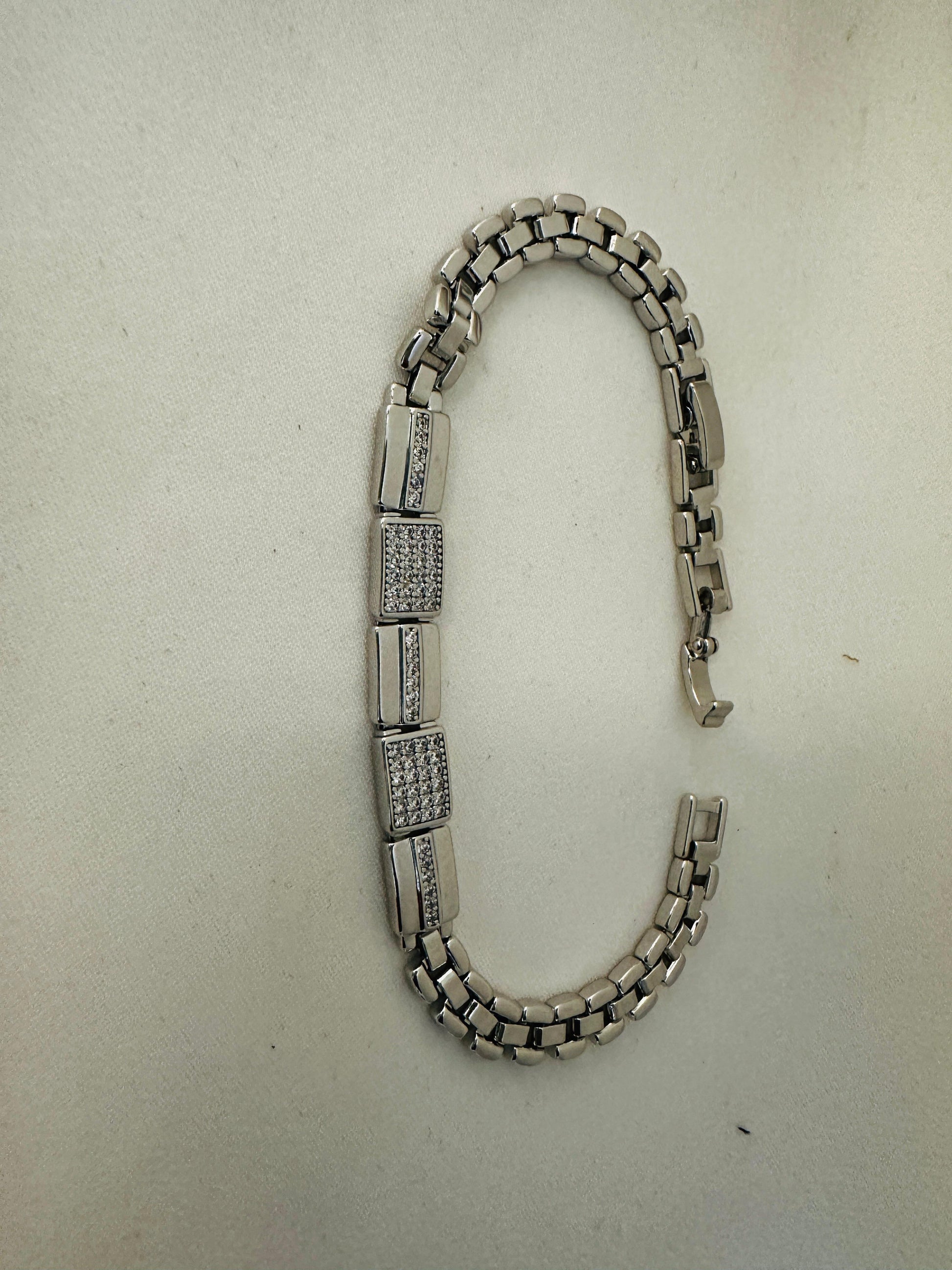 Features alternating textured and sleek rectangular links for a bold look