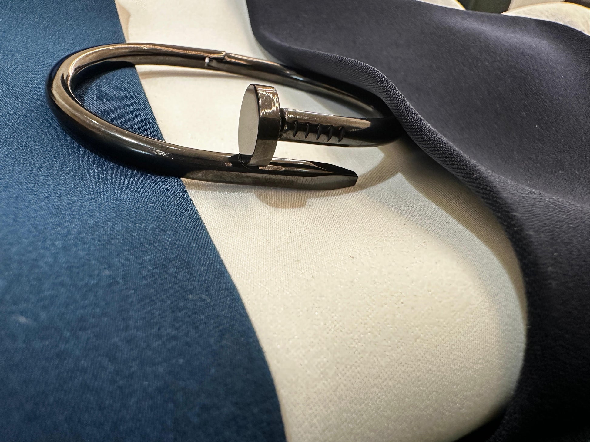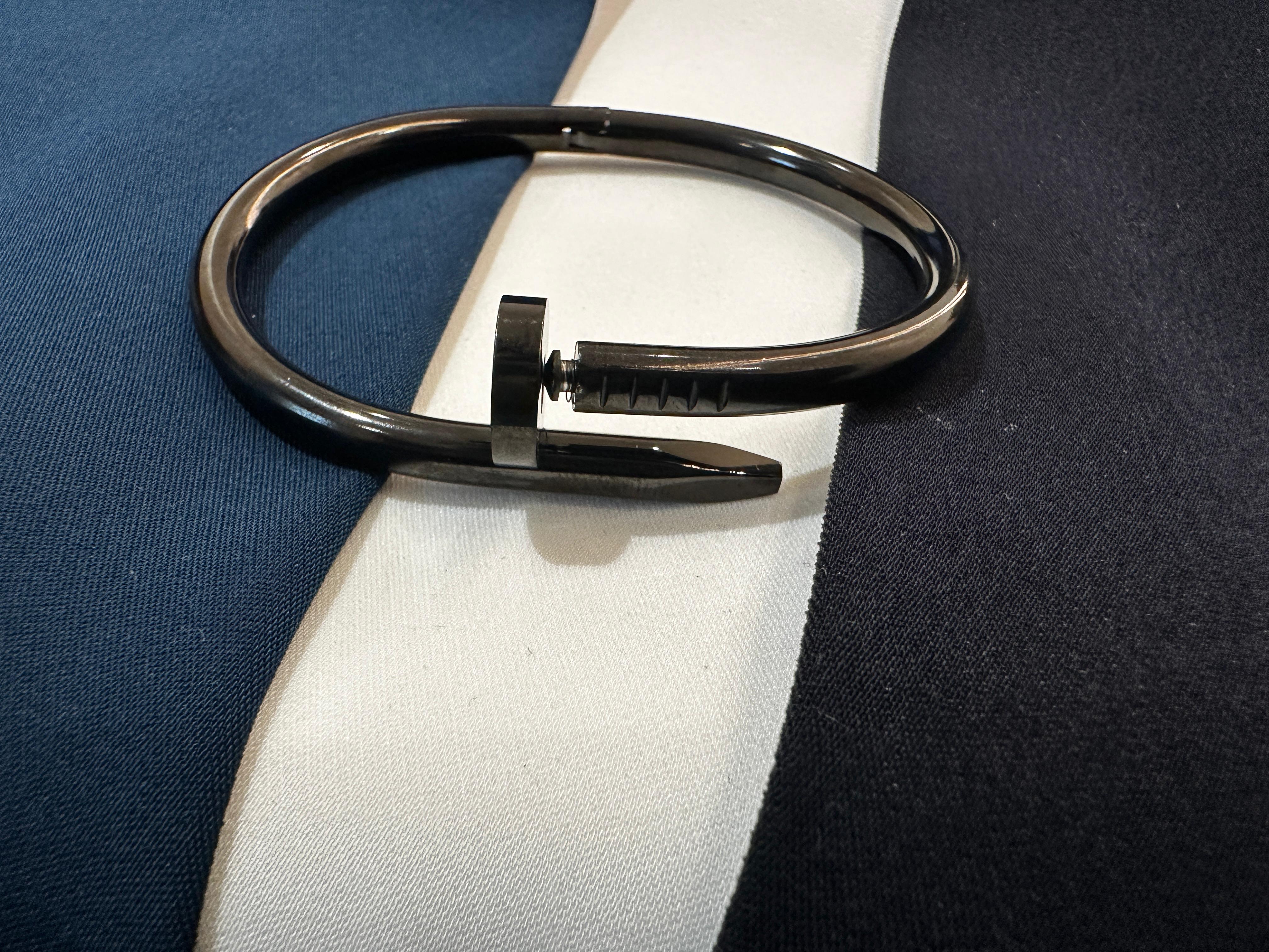 Bold & Modern Design: Inspired by the shape of a bent nail, this bracelet showcases edgy industrial elegance with a contemporary twist.